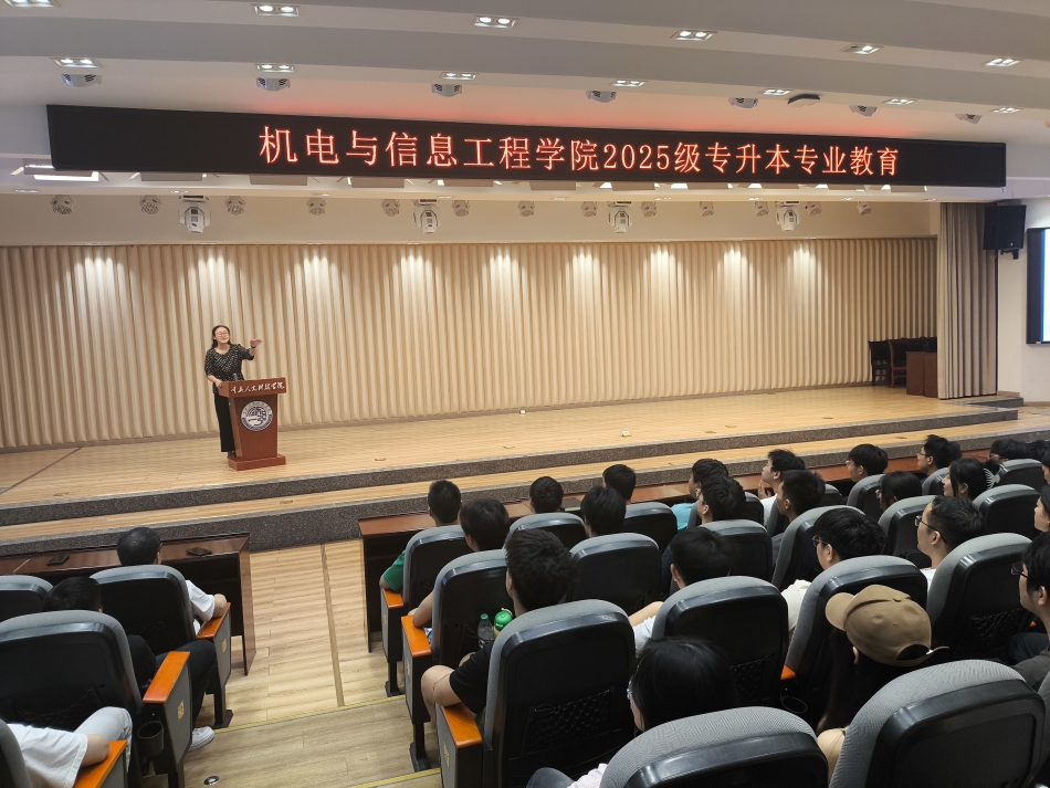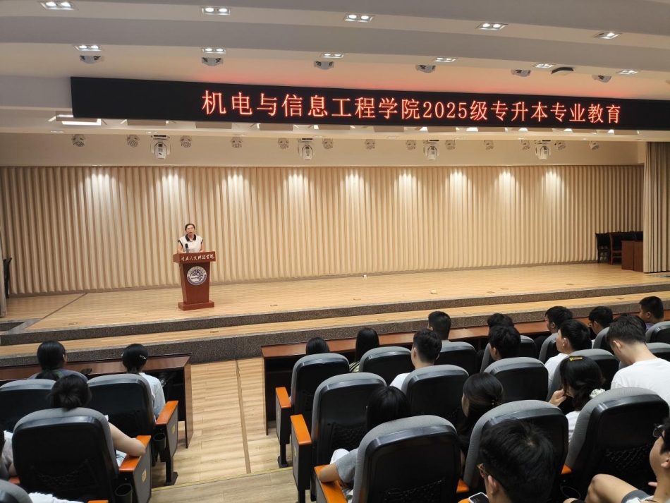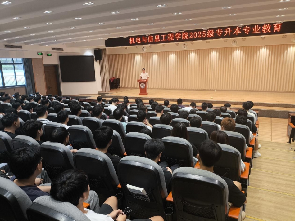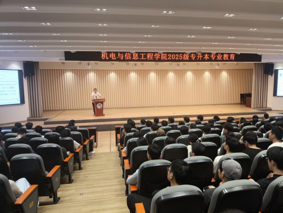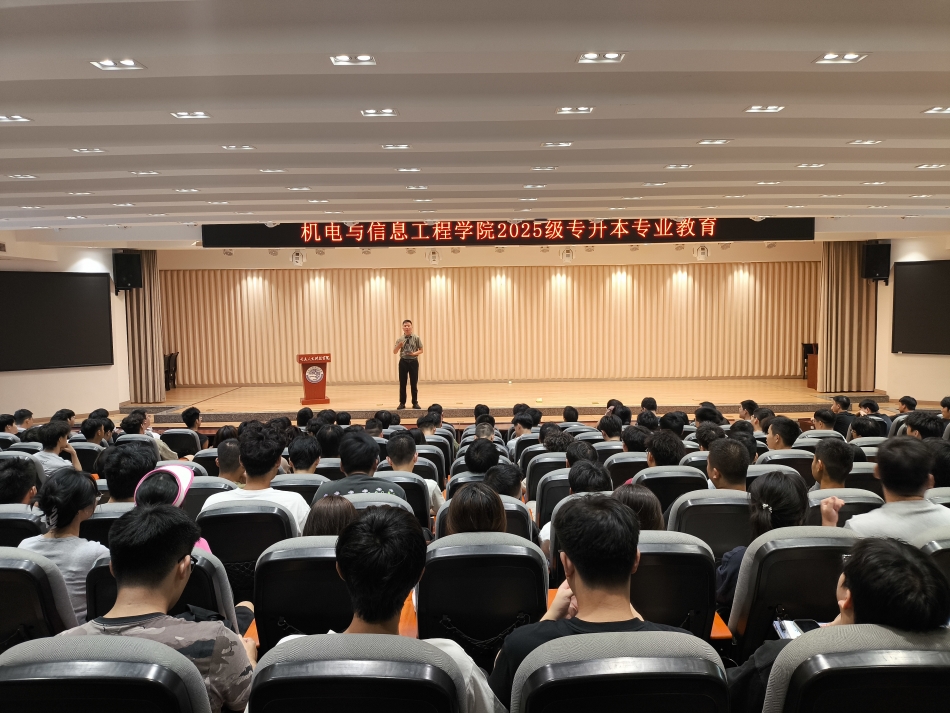为帮助2025级专升本新生快速适应本科阶段学习节奏,明确专业发展方向,9月2日中午,机电与信息工程学院在行知报告厅成功举办专升本新生专业教育。学院院长强华,副院长邓凌云、李正网,系主任武时会、唐义思等学院领导和专业教师代表以及全体专升本新生参加会议,会议主要围绕专业介绍、课程体系、学业规划、培养方向等核心内容展开进行讲解,结合专升本学生特点与培养目标,为全体新生送上“专业成长指南”。