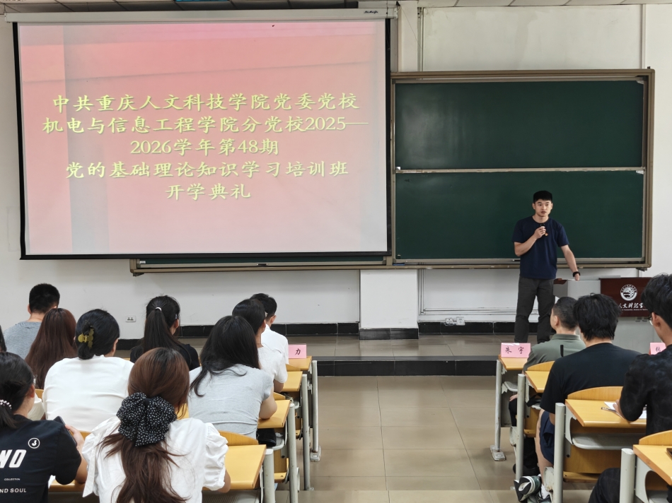 2025年10月9日,机电与信息工程学院分党校第48期党的基础理论知识学习培训班开班典礼在格致楼3102教室隆重举行。机电与信息工程学院党总支书记兼副院长、本期党校校长朱宇,党总支专职组织员王力,以及学生党支部书记和137名学员参加本次开班仪式,会议由培训班班主任甘霖主持。