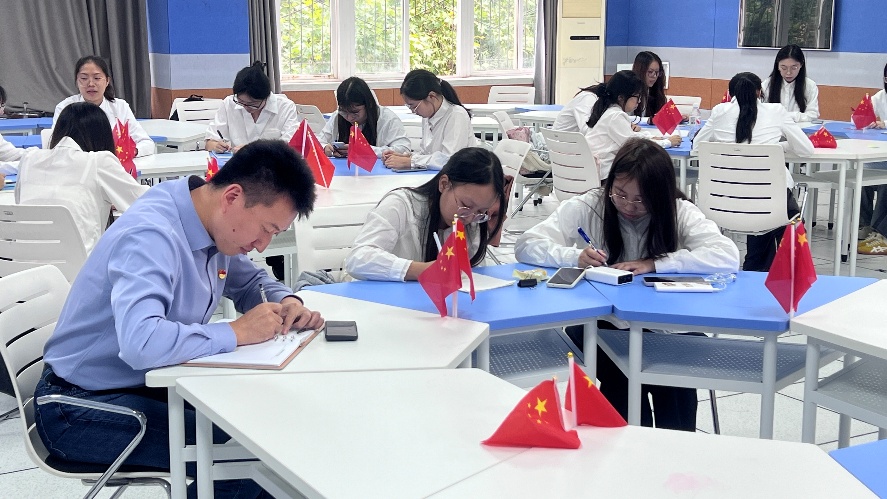 紧接着,支部党员和积极分子们在便利贴上,写下了自己的承诺,张贴在“九章先锋承诺墙”上,承诺以援疆党员为榜样,扎根基层教育,把课堂变成孩子梦想起航的地方。