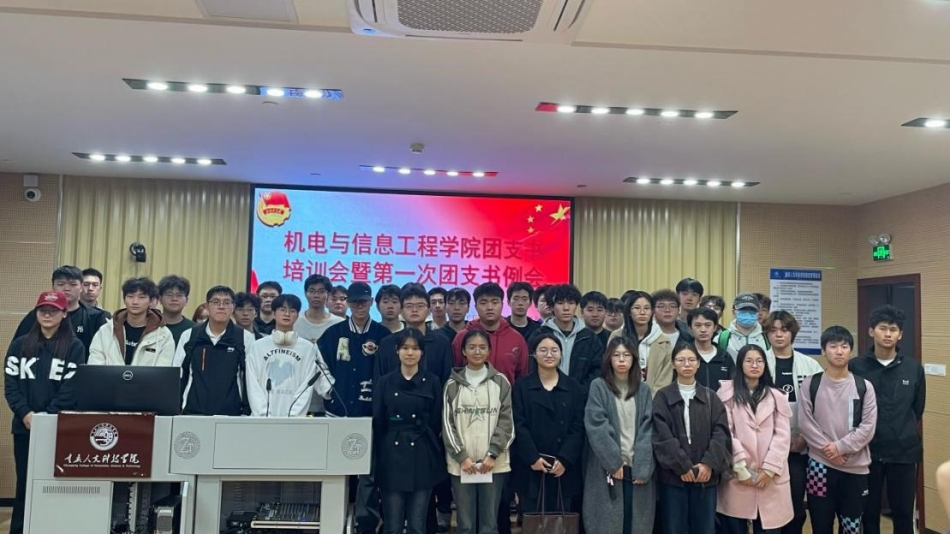 为强化基层团组织建设,提升团支书队伍业务能力与责任意识,打造政治坚定、作风过硬的团干部队伍,10 月 29 日下午 15 时,重庆人文科技学院机电与信息工程学院团总支组织部在 15 教 1301 教室,举办新任团支书培训会暨第一次团支书例会。本次培训由团总支组织部负责人丁星月、姚怡冰主讲,学院各班级团支书全程参与。