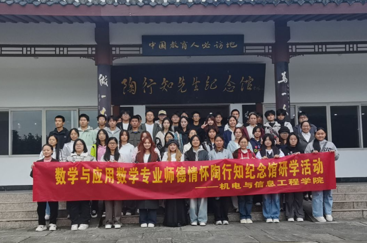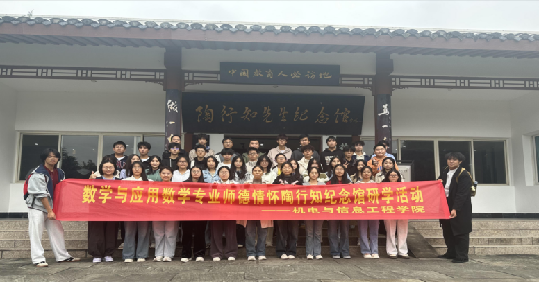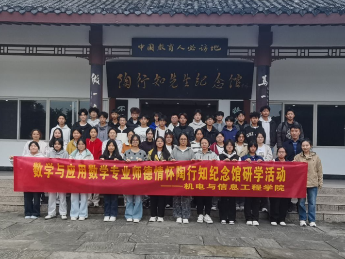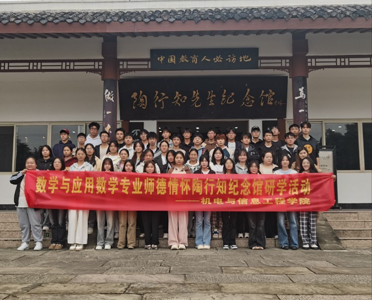 为深刻感悟人民教育家陶行知先生的教育理念与奉献精神,2025年11月5日,机电与信息工程学院组织2025级数学与应用数学专业全体师生,前往重庆合川陶行知纪念馆开展研学活动。本次活动旨在将《数学专业导论》第一课堂与实地研学第二课堂相结合,引导师范生传承行知教育思想,坚定育人初心。