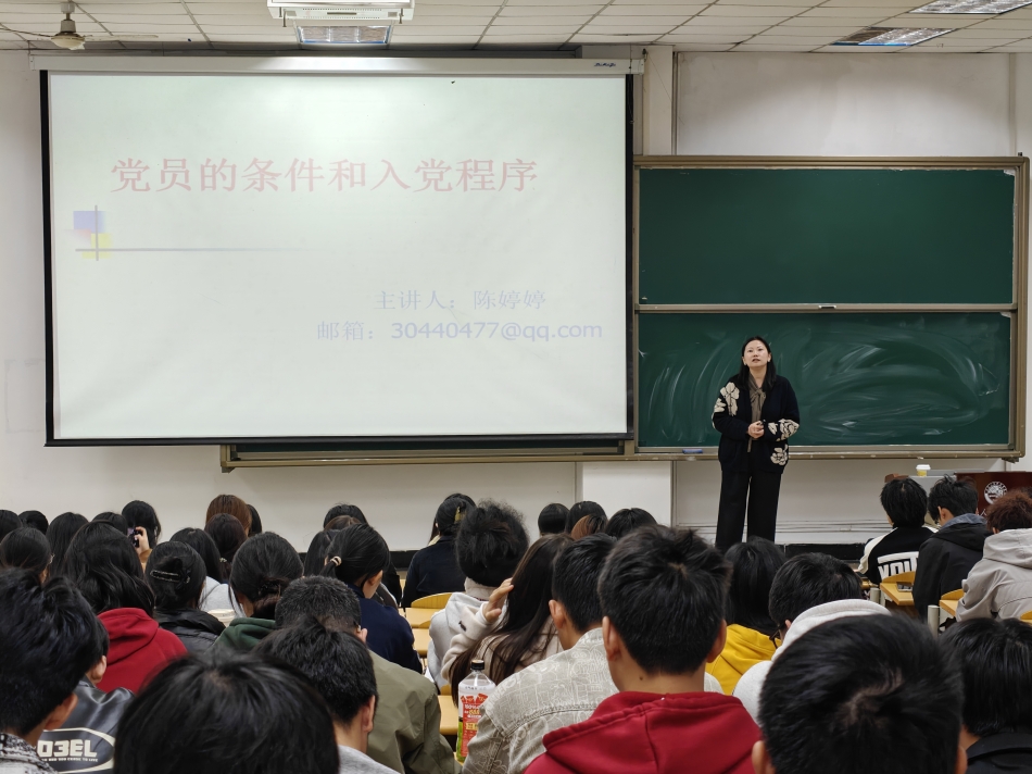 陈婷婷书记以《中国共产党党员的条件和入党程序》为主题,从“申请入党的基本条件”、“党员的基本条件”、“党员的权利”和“入党程序”这四个方面给学员们进行授课。她期望学员们通过本次党课的学习,深入了解党员这个身份所代表的含义,明确党员的权利与义务,熟悉党员发展的流程,以自己的实际行动积极向党组织靠拢。