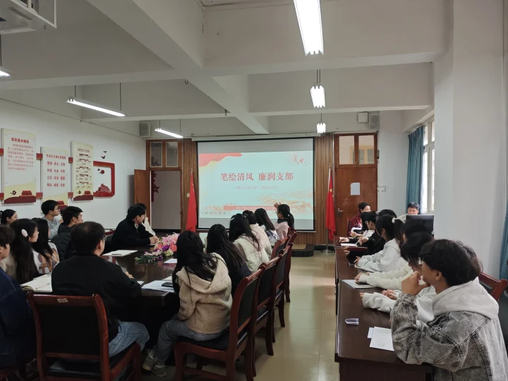 为深入推进廉洁文化建设,筑牢支部党员廉洁自律思想防线,引导青年学子树立清正廉洁的价值追求。学生第三党支部于2025年11月12日在格致楼3310党员活动室开展“笔绘清风,廉润支部”主题党日活动,本次活动由支部书记张丹同志主持,支部全体党员参加,共计43人。