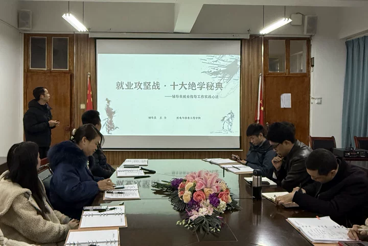为持续推进学院辅导员队伍职业化、专业化、专家化建设,全面展现2025年辅导员工作成效,助力学院学生工作与学科发展深度融合、提质增效,11月13日,机电与信息工程学院组织开展2025年“辅导员说工作”交流会。学院党总支书记朱宇、党总支副书记贾庆辉与全体辅导员参加会议。