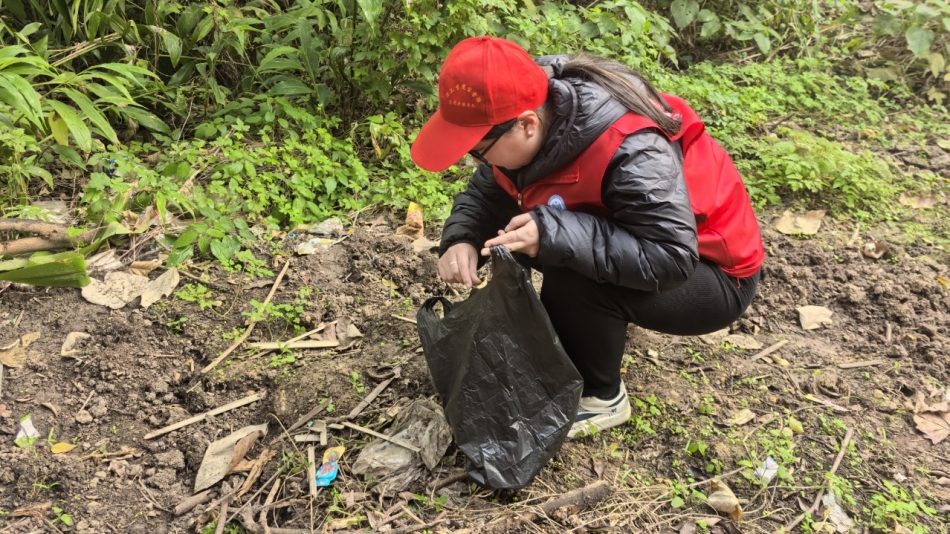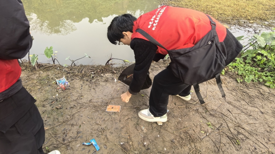 活动当日,暖阳拂面,清风送爽。志愿者们身着统一志愿服装,迅速完成分组后,手持清洁夹、垃圾袋等工具沿百岁溪沿岸开展 “拉网式” 清理。他们弯腰俯身,细致捡拾草丛间、步道旁、水域边缘的塑料瓶、果皮纸屑、废弃包装袋等生活垃圾;针对灌木丛中隐藏的顽固杂物,通过徒手搬运、工具撬取等方式合力清除,用实际行动诠释了青年志愿者不怕脏、不怕累的奉献精神。