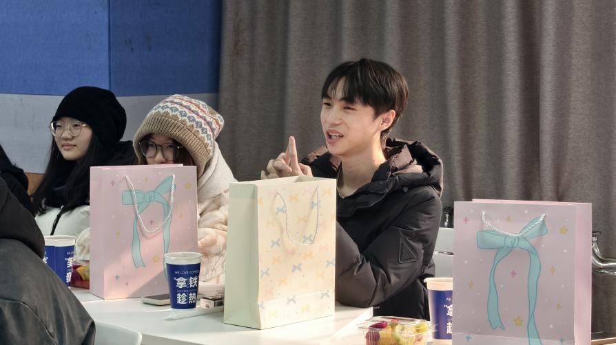 会场内,学院为学子们精心准备的 “暖心礼包” 整齐摆放,包含暖手宝、考研文具、新鲜水果及热饮等物资,每份礼物都承载着学院对学子的深切关怀与美好期许。