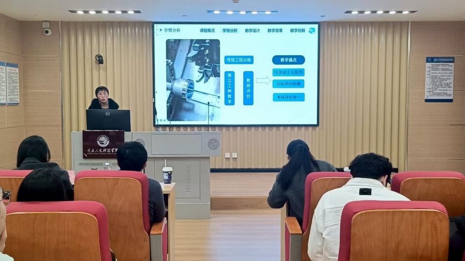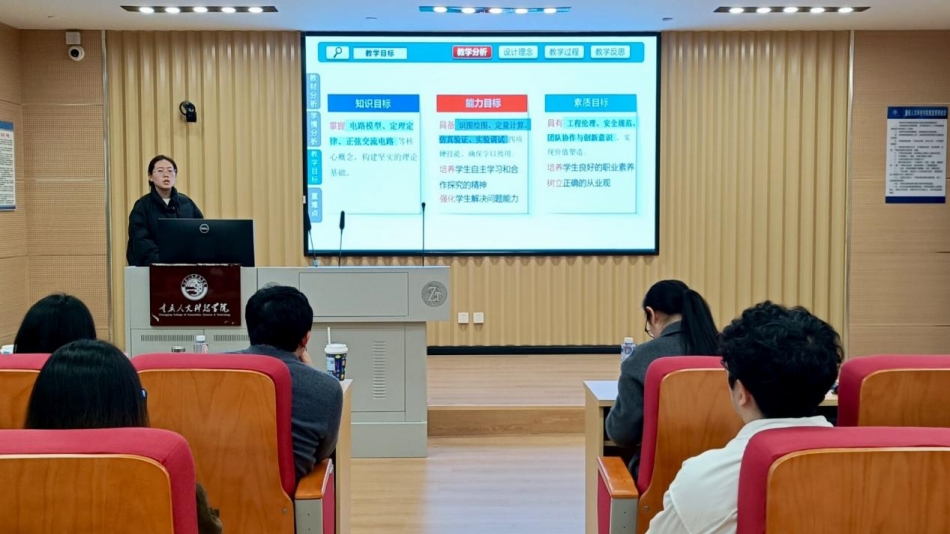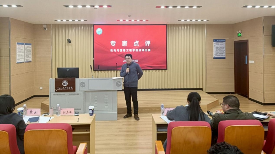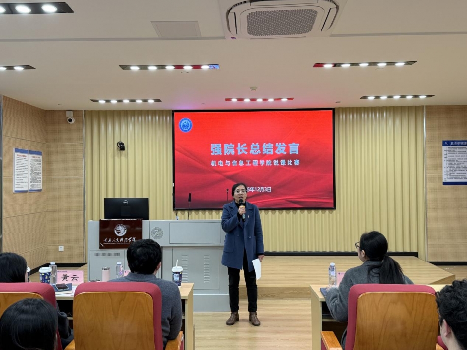 为深入推进课堂教学改革,推动课程内涵建设,提升教师教学设计与课堂实施能力,12月3日下午,我院在15教1301观摩教室举行2025-2026学年第一学期说课比赛决赛,比赛特邀重庆大学能源与动力工程学院黄云教授、重庆科技大学刘志芳副教授担任专家评委,学院院长强华教授、副院长李正网、邓凌云及全体教师观摩了比赛。