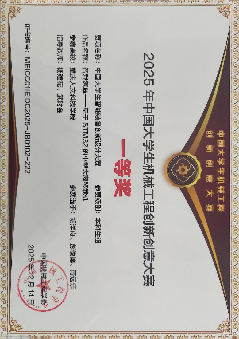 初心如磐,笃行不怠。未来,重庆人文科技学院将持续深化创新创业教育改革,搭建更优质的科技创新实践平台,鼓励更多学子投身智能装备创新领域,在实践中锤炼本领、勇攀高峰。让学子的智慧成果在产业升级的广阔舞台上落地生根、开花结果,为我国智能装备产业高质量发展持续注入重人科力量!