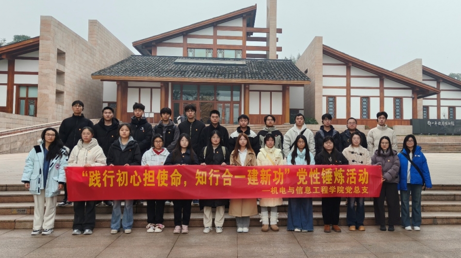 为深入学习贯彻党的二十届四中全会精神,强化新发展党员的党性修养与使命担当,2025年12月19日,机电与信息工程学院党总支组织本年度新发展党员赴四川广安邓小平故里,开展以“践行初心担使命,知行合一建新功”为主题的党性锤炼活动,让青年党员在沉浸式学习中接受精神洗礼,汲取奋进力量。