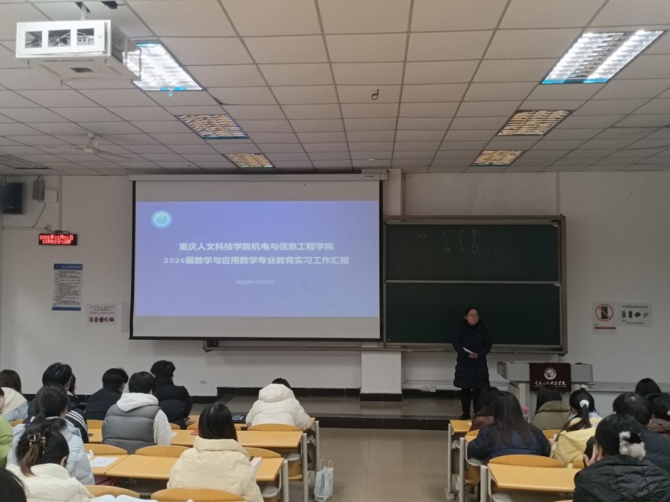 为总结教育实习成果,提升学生教育教学实践能力,2025年12月31日,数学与应用数学专业在格致楼3102召开2022级教育实习总结大会,数学系主任薛海波教授、全体实习指导教师及2022级全体实习生参会。