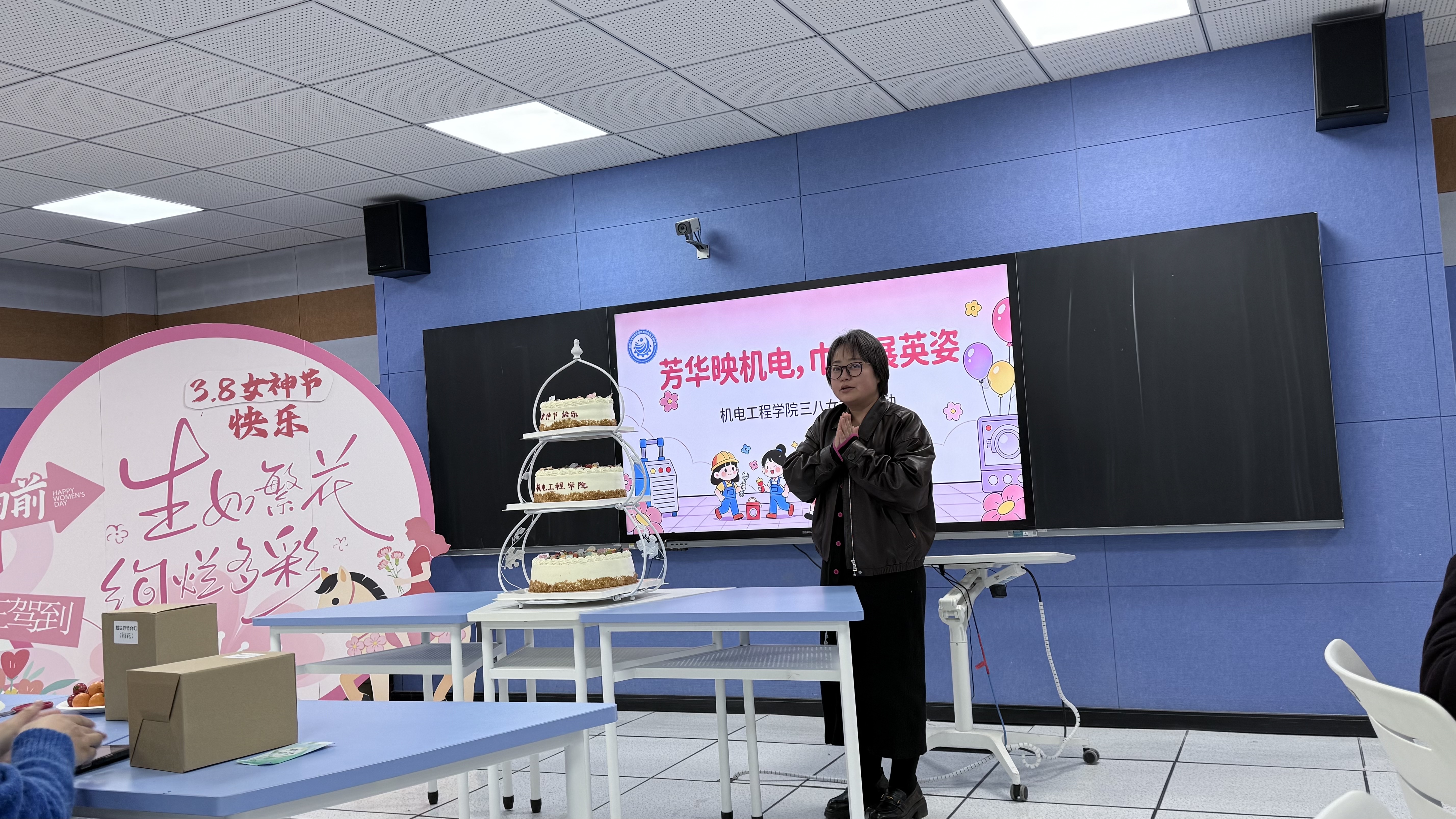 在第116个“三八”国际劳动妇女节到来之际,为丰富学院女性教职工的业余生活,致敬巾帼力量,提升团队凝聚力,机电工程学院于2026年3月4日下午,在3307教室开展以“芳华映机电,巾帼展英姿”为主题的三八妇女节室内趣味活动,学院50余名女性教职工欢聚一堂,共庆佳节。